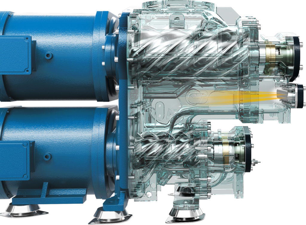 Två varvtalsstyrda permanentmagnetmotorer i högsta verkningsgradsklass IE5 säkerställer behovsbaserad leveransanpassning och maximala energibesparingar.