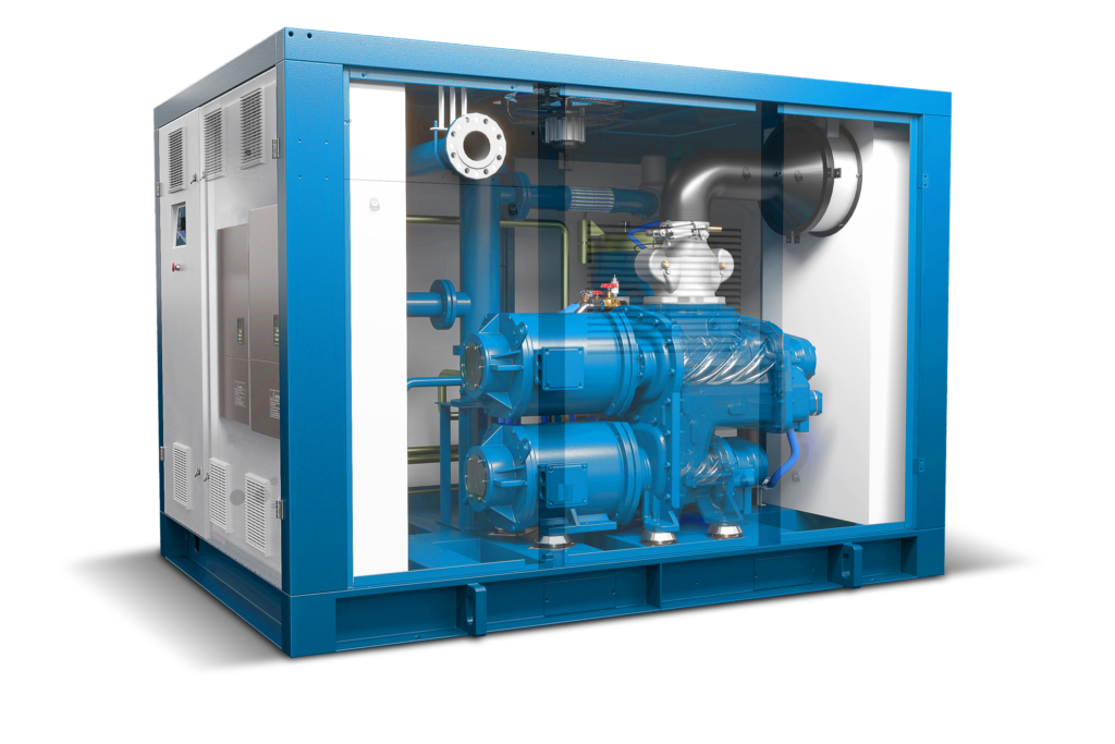 När det gäller Industri 4.0 har den nya generationens styrsystem alla förutsättningar för att delta i företagets interna kommunikation eller för att övervakas externt via molntjänster. Den unika stegdesignen integrerar det första och andra steget i en enda komprimeringsenhet. Rotorerna i varje kompressionssteg når optimal hastighet genom den integrerade växellådan. Effektiv kompression uppnås genom att använda en kyloljedimma för mellankylning. Denna kontrollerade mängd olja gör det samtidigt möjligt att underskrida tryckdaggpunkten, vilket förhindrar kondensbildning i det andra kompressionssteget. Detta eliminerar behovet av en klumpig och kostsam separat intercooler, samtidigt som tillförlitligheten ökar.